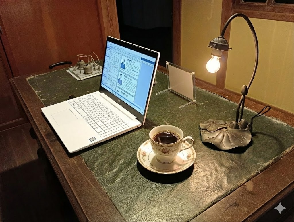 館内はWI-FI環境が整っていて、デスクワークができる空間が用意されています。誰にも邪魔されず、昭和初期の書斎を思わせる部屋で、特別な時間を過ごせます。