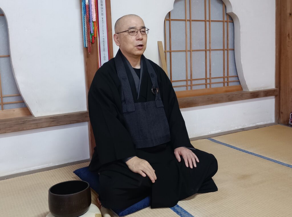 ご住職が、優しく丁寧に座禅の基本を初心者にも分かるように教えてえくださいます。